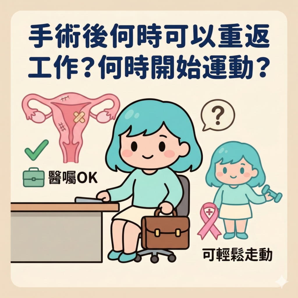 √以常見的腹腔鏡子宮肌瘤或卵巢手術舉例,大部分可以在術後兩週回到辦公室,爬樓梯、拿三五個文件夾不成問題。