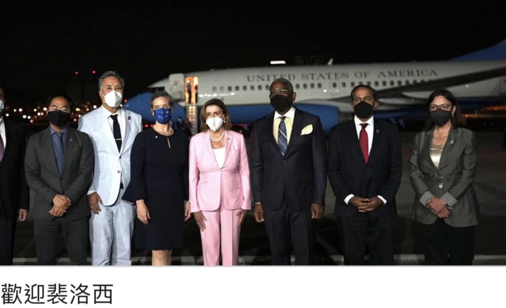第二張圖中剛下飛機、穿著一身粉紅套裝神采奕奕的女士,就是八月炫風訪台的美國眾議院議長佩洛西,她今年已經82歲了!
