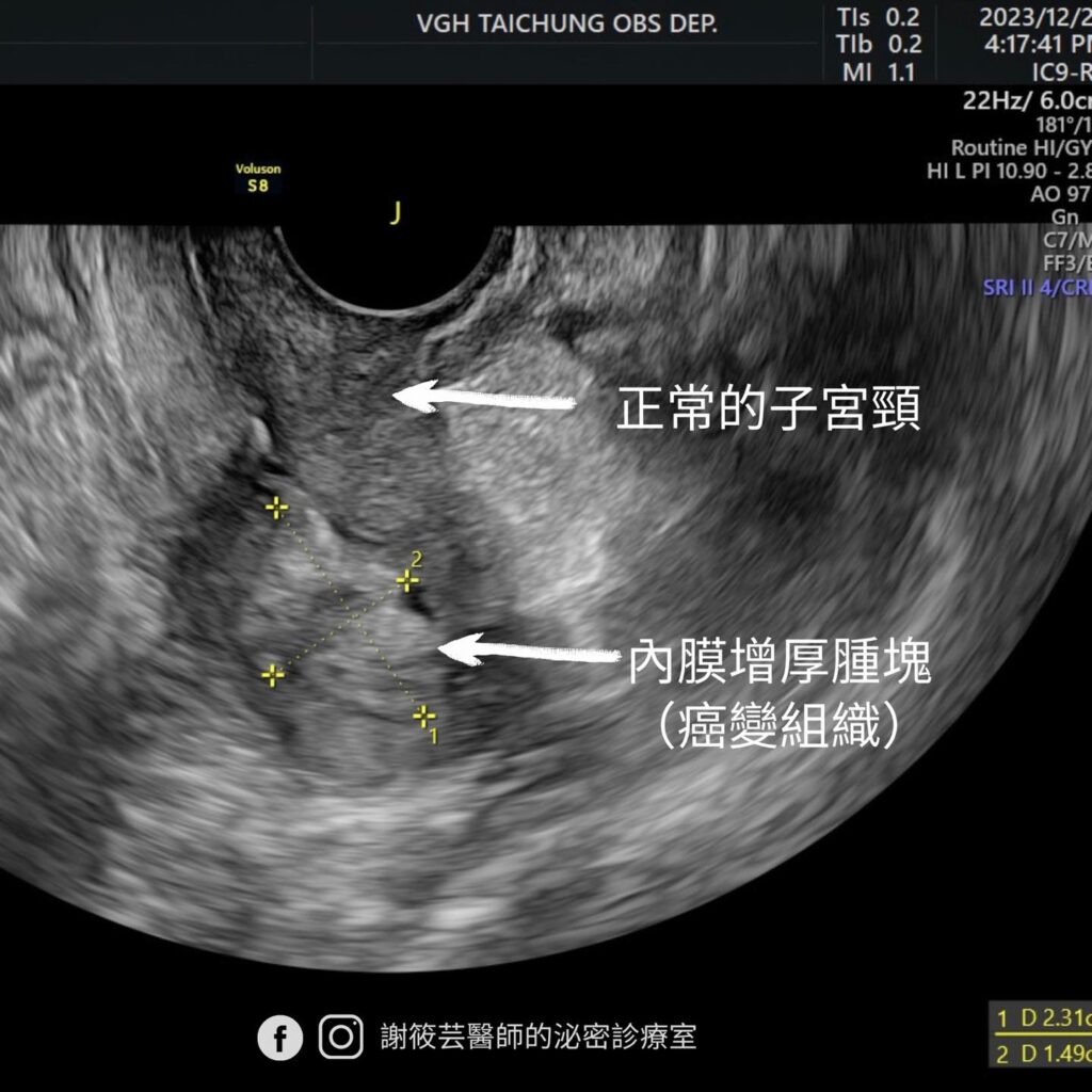 陰道超音波照出子宮內膜有明顯增厚,當下立刻做切片抽樣,診斷為子宮內膜癌。阿鑾在診間聽到報告簡直無法置信,自己一向規律作息、不菸不酒,也沒有服用荷爾蒙藥物,還有定期抹片檢查的好習慣,怎麼會突然檢查出子宮的癌症呢!?