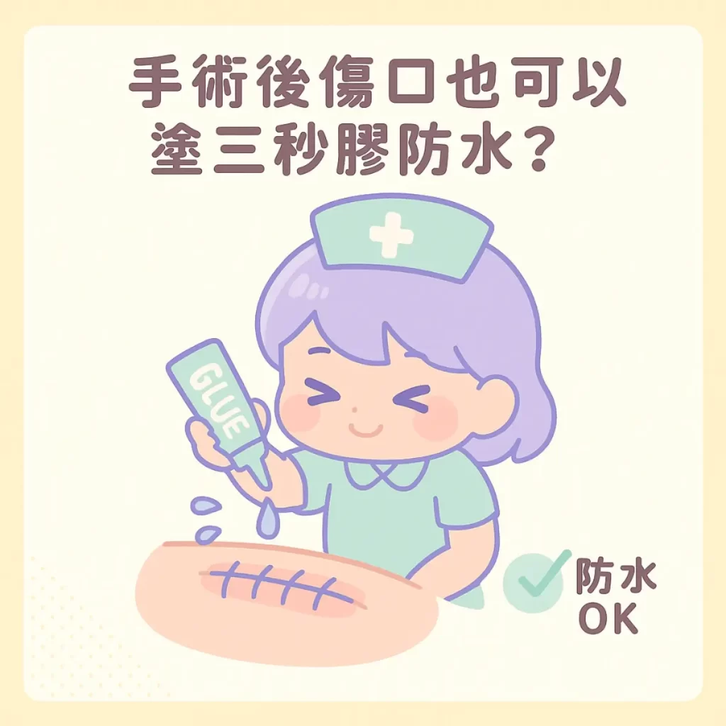 可以在手術中使用醫療級傷口黏膠 ,塗抹上後1分鐘內就會完全乾燥,回到病房或返家後隨時可碰水淋浴。
